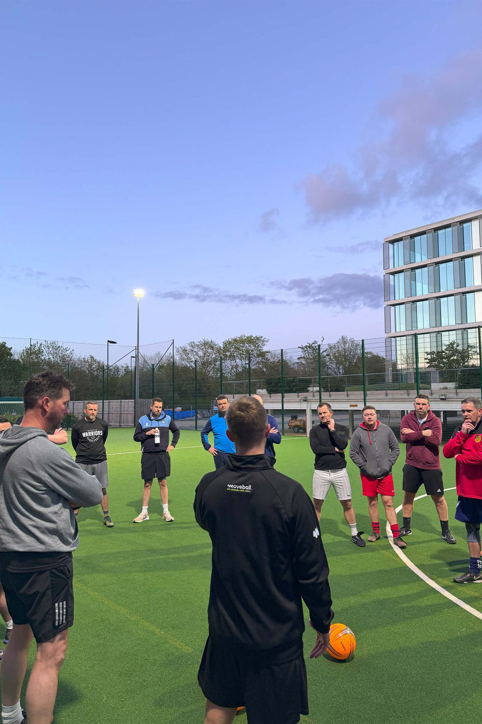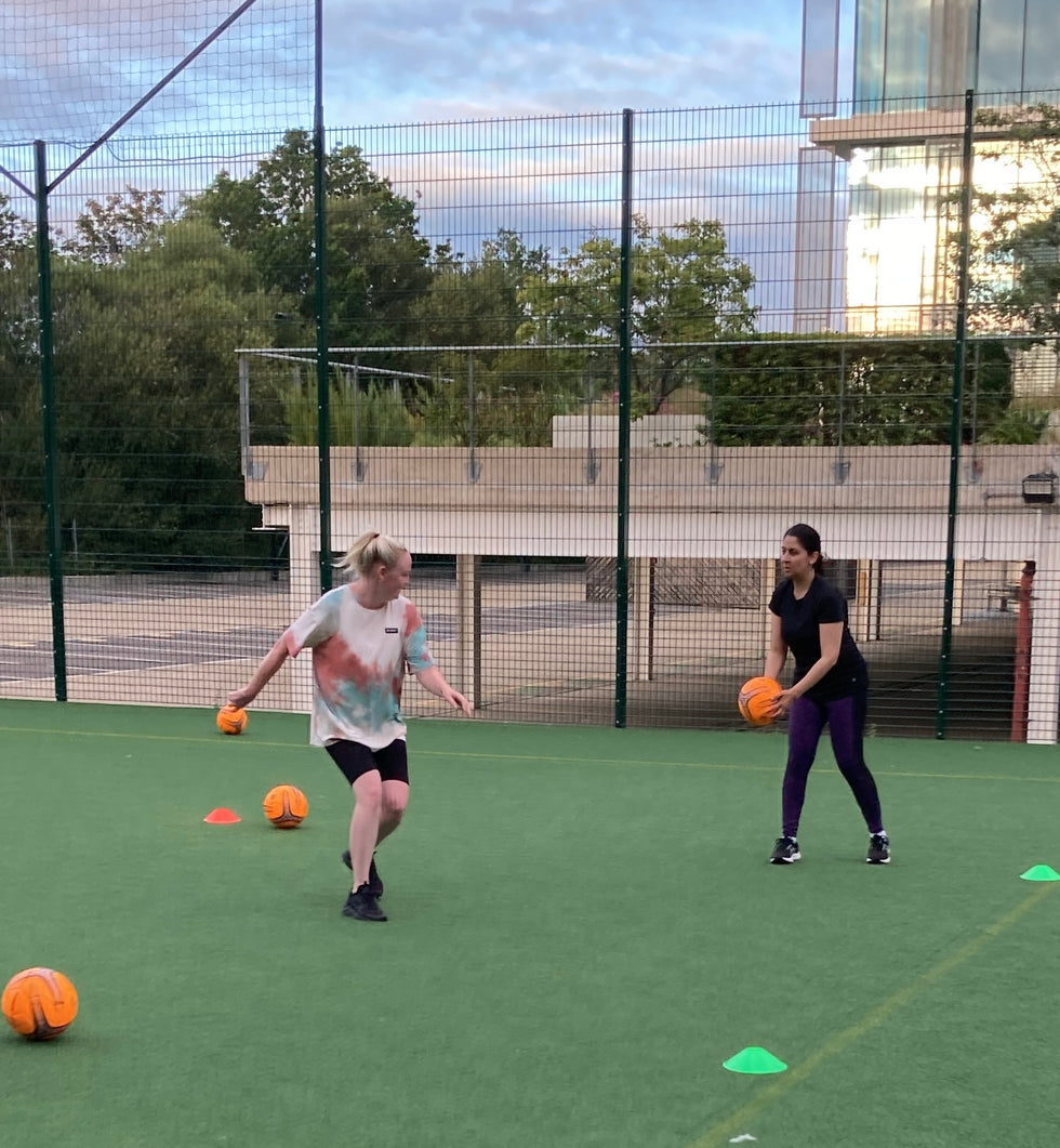 Session-based programme using football-style exercises and obstacles adapted for low mobility.